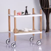 Hot Sale Home Furniture Black Wood Frame Plastic 2 Tier Kitchen Trolley with Wheels