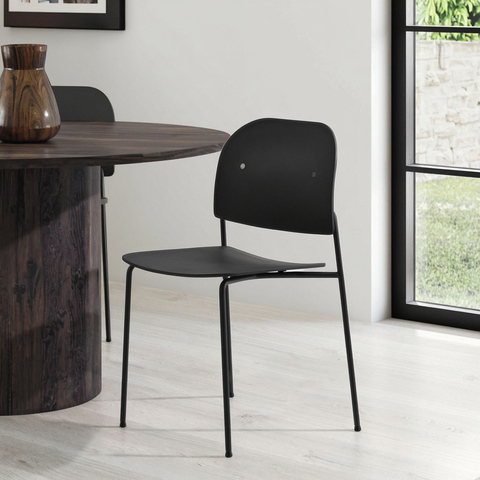 Factory Indoor Furniture Nordic Cafe Chair Plastic Seat Metal Frame Single Seater Low Height Modern Black Living Room Chair