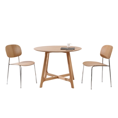 Factory Modern Design Home Kitchen Furniture 4 Seater 100cm Modern Oak Vaneer Round Wooden Round Dining Table
