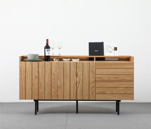 Home Living Room Furniture Modern Nature Wood OAK Japanese Wabi-Sabi 5 Drawers Storage Sideboard Buffet Cabinet