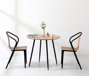 BSCI Factory Home Furniture Simple Modern Nature Wood Oak Veneer Round Cafe Dining Table and Chair for 2